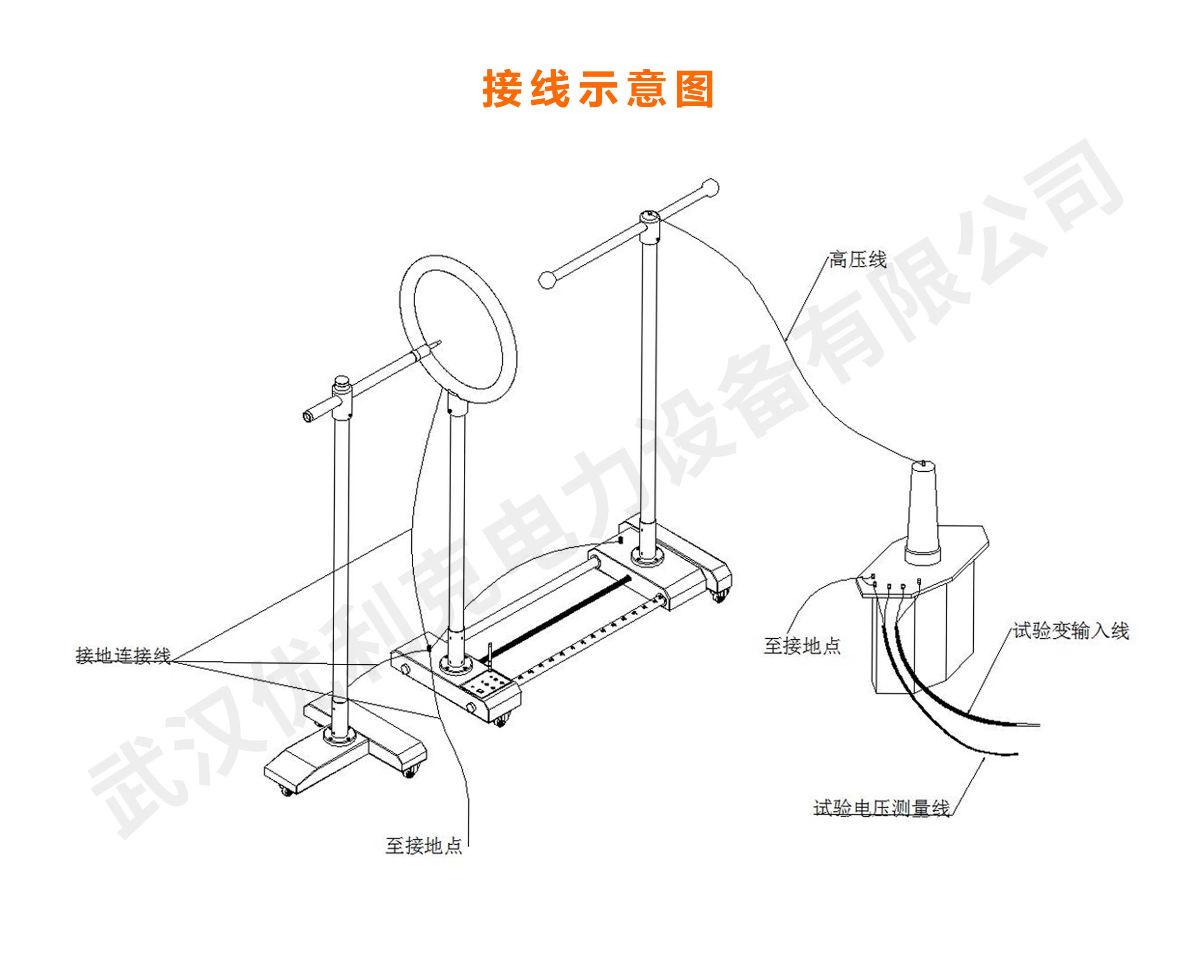 1、驗電器測試臺高壓電極為球形,接地電極為環形結構。
